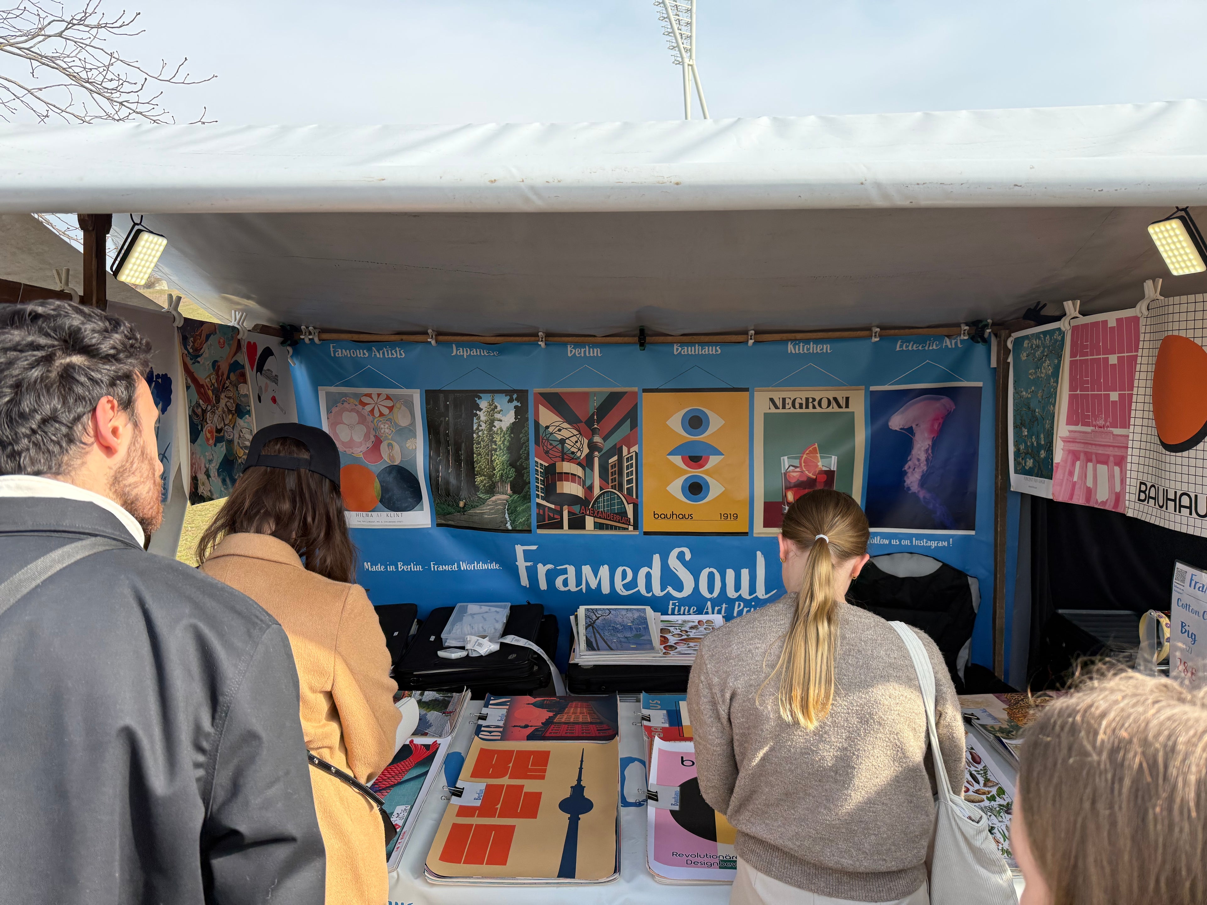 Seit 2024 sind wir außerdem auch auf Berliner Märkten vertreten. Dort hast du die Möglichkeit, unsere Motive direkt vor Ort zu entdecken, Materialien aus nächster Nähe zu sehen und einen echten Eindruck von Farben, Details und Qualität zu bekommen. Viele unserer Designs sind also nicht nur online, sondern auch auf ausgewählten Berliner Märkten erhältlich.